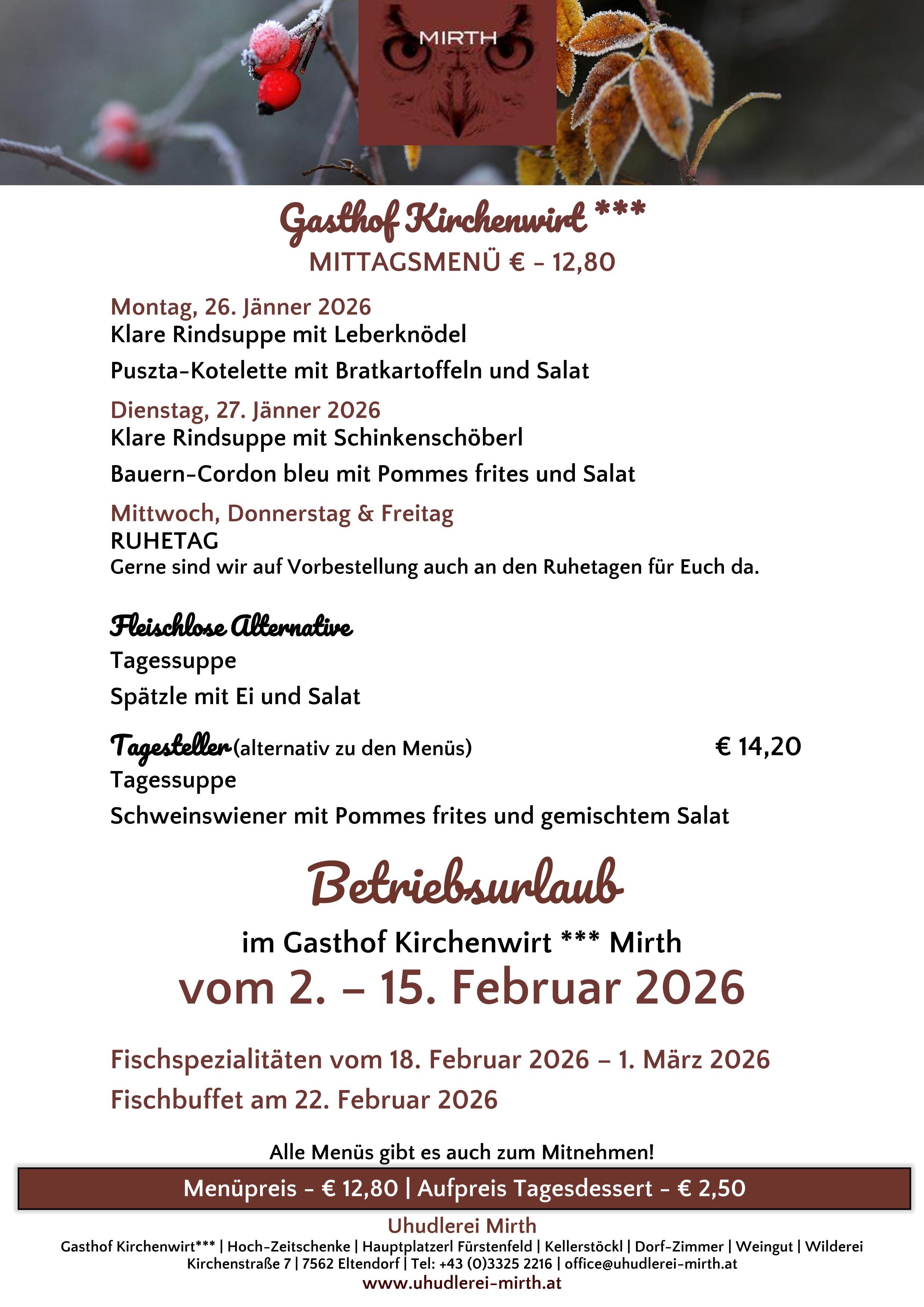 Auf Vorbestellung sind wir gerne auch an den Ruhetagen für Sie da!